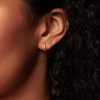 The earrings measure approximately 3/8, making them the ideal size for everyday wear. The huggie style ensures a secure and comfortable fit, making them perfect for all-day wear. These hoops are the perfect combination of simplicity and sophistication, making them a must-have for any fashion-forward individual.