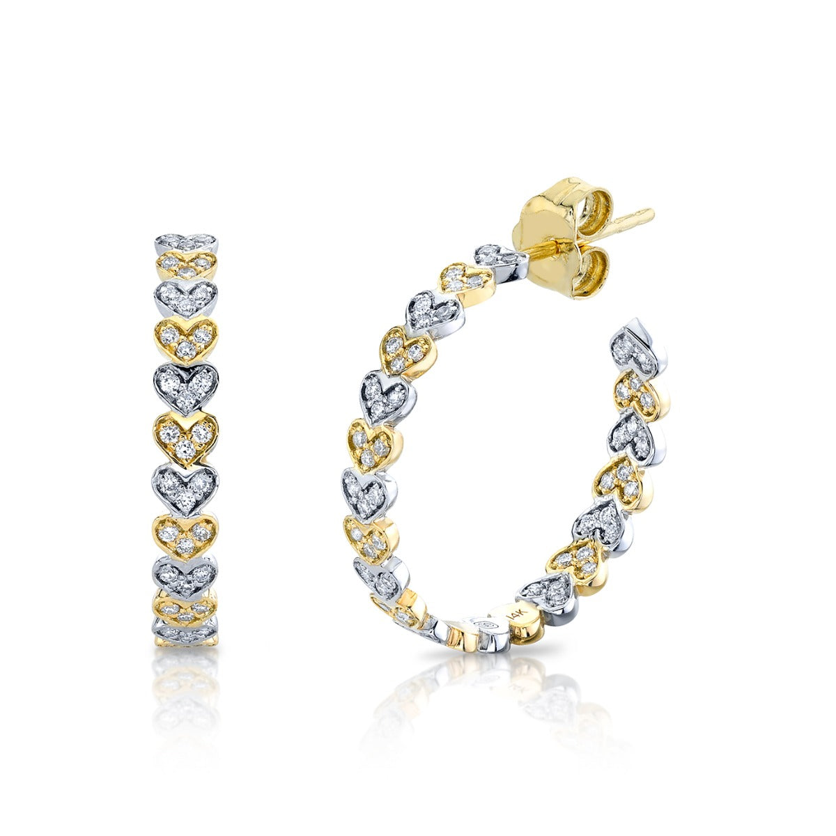 Sydney Evan Women’s Earrings Two Tone Gold & Diamond Medium Heart Eternity Hoops