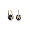 14k yellow gold butterfly bead earrings feature pavé-set diamonds with 10mm blue sapphire beads. Measure approximately 5/8″ h x 3/8″ w. Fine 14k gold hinged wire closure.
