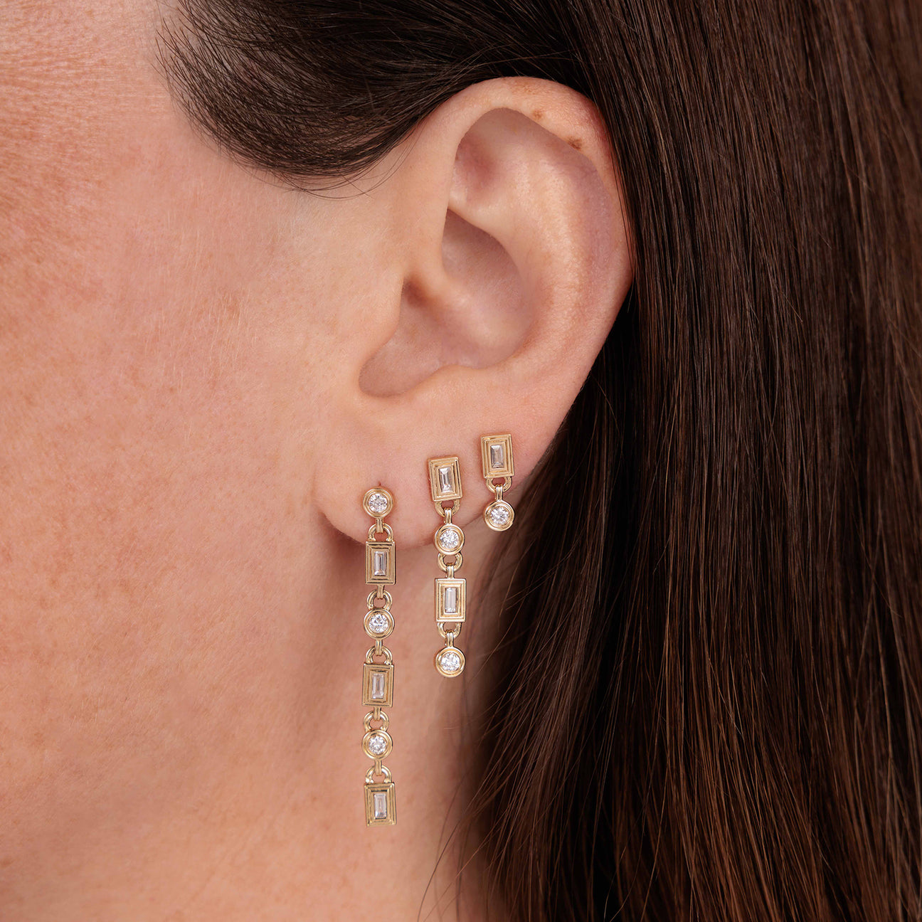 Sydney Evan Women’s Gold & Diamond Fluted Baguette & Round Drop Earring