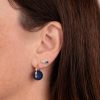 14k yellow gold marquis eye bead earrings feature pavé-set diamonds with 12mm lapis beads. Measure approximately 5/8″ h x 3/8″ w. Fine 14k gold hinged wire closure.