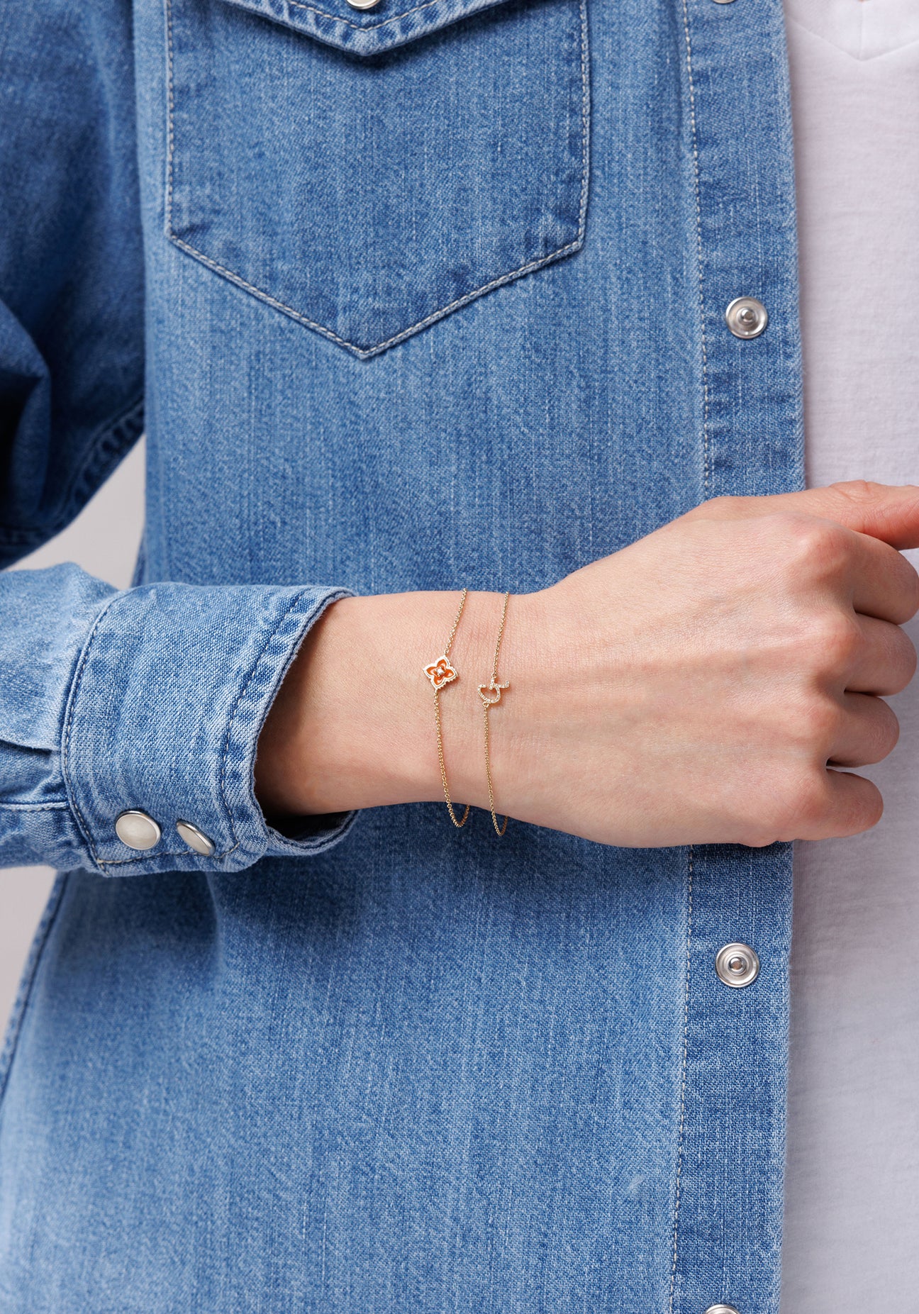 The Moroccan flower charm is more than just a beautiful adornment; it symbolizes growth, beauty, and the blossoming of one’s inner self. In Moroccan culture, the flower is a representation of the intricate balance between life’s fleeting moments and the enduring beauty found within. Each diamond embedded in the charm enhances this symbolism, reflecting the inner light and resilience of the wearer. Let this bracelet be a reminder of your unique journey and the beauty that unfolds with each step you take.