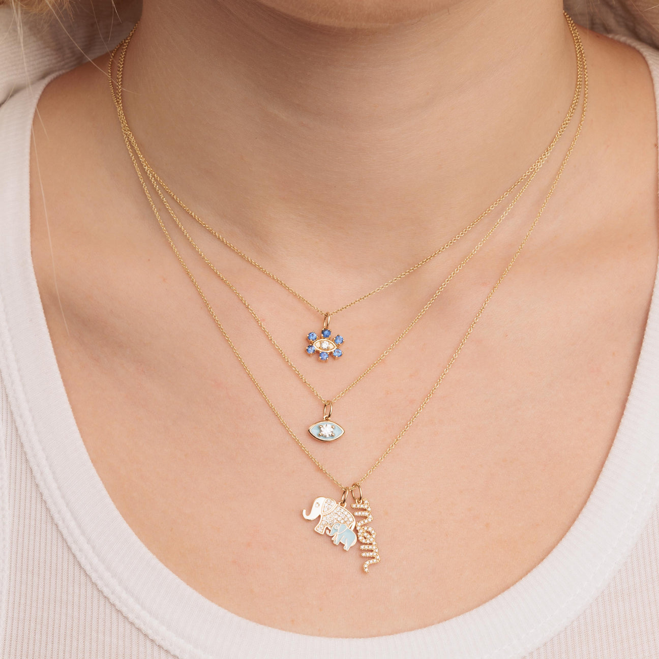 Celebrate the heart of the family with our 14k gold “Mom” charm necklace, delicately spelled out in our signature SE hand-drawn script and accented with pavé-set diamonds. A timeless symbol of love, strength, and devotion, this elegant charm measures approximately 1/4″ high by 3/4″ wide and hangs from your choice of a fine 14k gold ball chain in 16″ or 18″ length. A meaningful gift and a cherished keepsake, this piece honors motherhood with brilliance and grace.