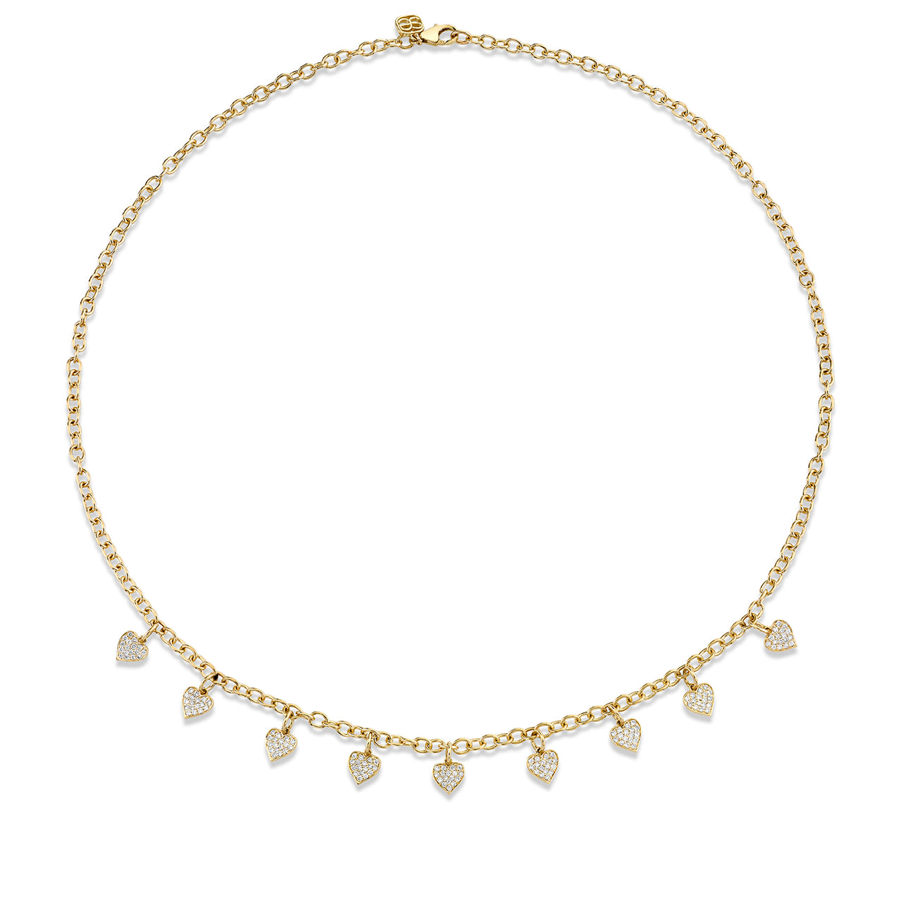 Celebrate love in all its forms with this 14k yellow gold multi-charm necklace, featuring nine radiant diamond heart charms. Each heart is pavé-set with brilliant diamonds, symbolizing affection, connection, and timeless devotion.