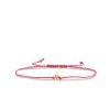 This vibrant pink silk cord bracelet showcases a stunning 14k yellow gold plumeria flower bead charm, adorned with diamond. The charm’s intricate design and sparkling details add a touch of elegance to this playful and stylish bracelet. All Sydney Evan cord bracelets are strung on an adjustable silk cord along with our 14k gold SE logo charm.