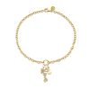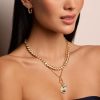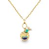 Each charm is delicately placed on a pure gold protective eye link clip, adding a touch of uniqueness to this already exquisite piece. The fine 14k gold elongated cable chain measures 20 inches, making it the perfect length to showcase the charms and add a touch of glamour to any outfit.