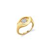 14k yellow gold and diamond small heart icon signet ring featuring a moon, a starburst and a protective eye. Fine 14k gold band.
