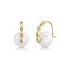 14k yellow gold tiny daisy bead earrings feature pavé-set diamonds with 10mm freshwater pearl beads. Measure approximately 5/8″ h x 3/8″ w. Fine 14k gold hinged wire closure.