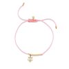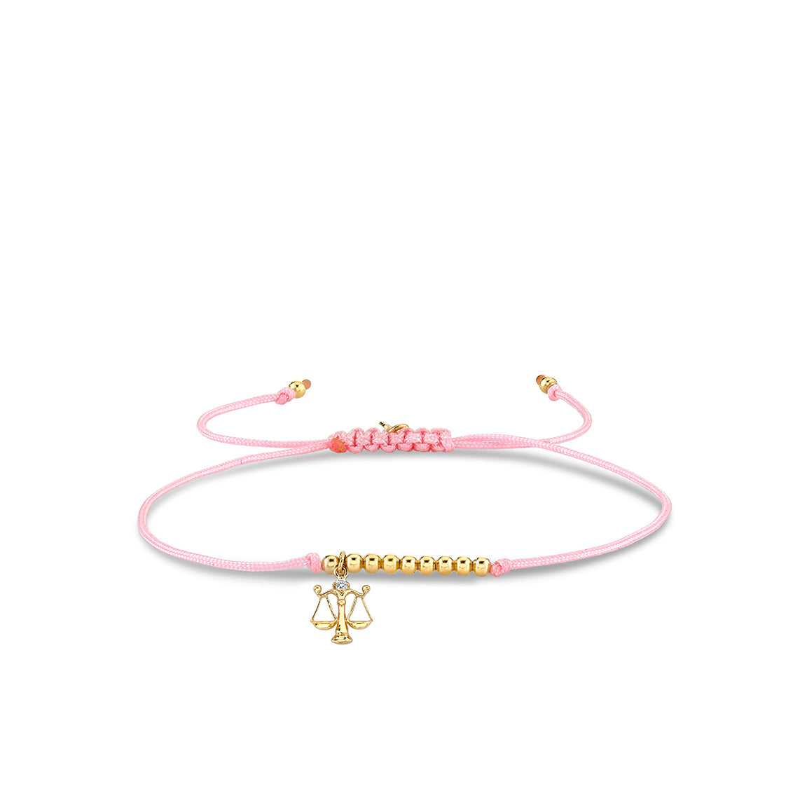 This enchanting bracelet features a light pink silk cord that effortlessly wraps around your wrist, evoking a sense of delicate charm. Each piece is meticulously adorned with lustrous 14k yellow gold beads that catch the light with every movement, adding a touch of sophistication to your ensemble.