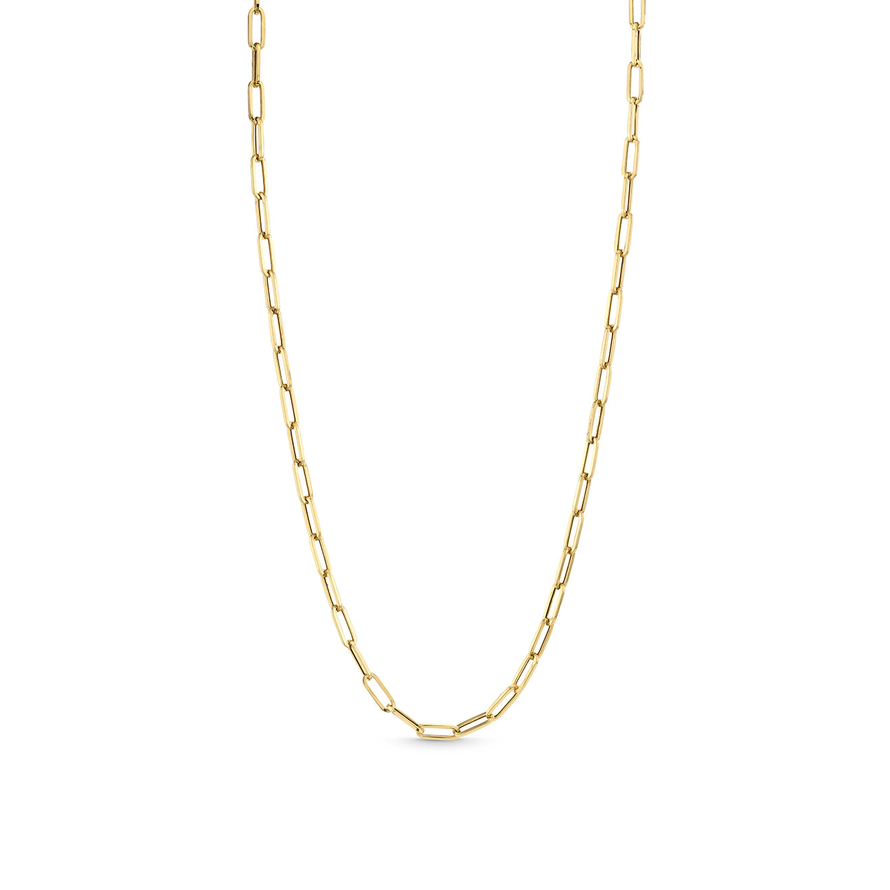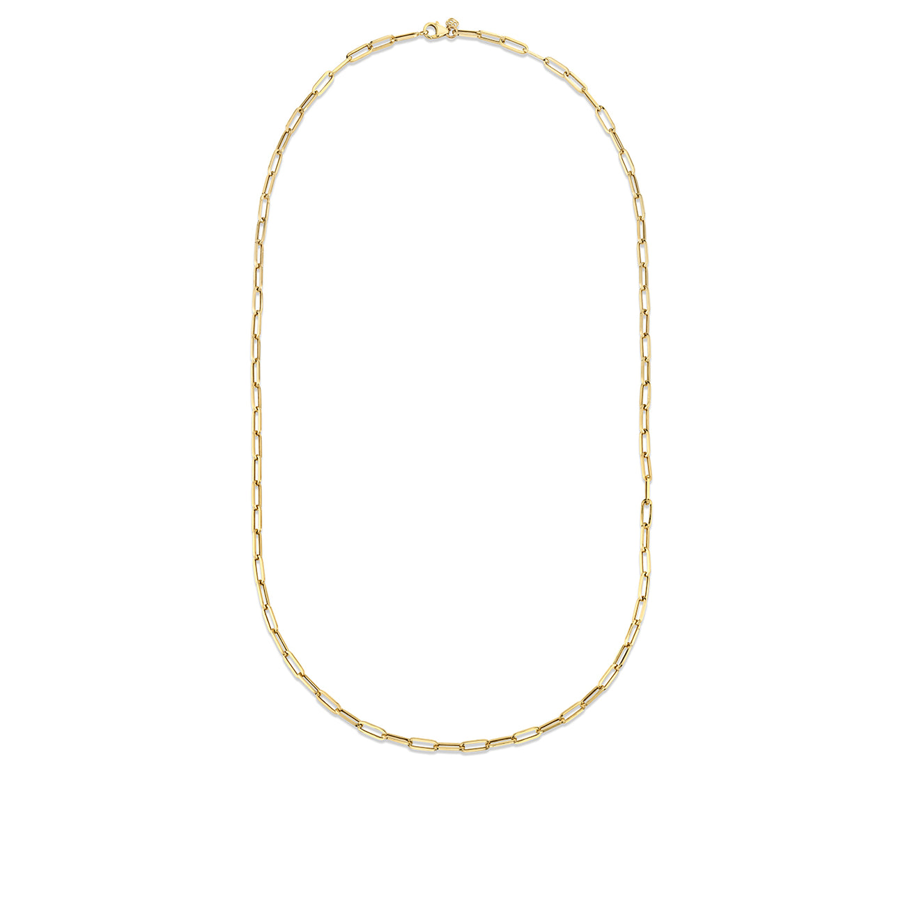 Elevate your jewelry collection with our stunning 14k yellow gold paperclip chain, expertly crafted for timeless elegance. Available in two versatile lengths—18″ and 20″—this chain features elongated links that measure approximately 4mm in thickness, providing a modern yet sophisticated look. Perfect for layering or wearing solo, this chain adds a touch of luxury to any outfit, making it an essential accessory for both everyday wear and special occasions. Experience the perfect blend of style and durability with this exquisite piece.