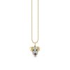Suspended on a fine 14k yellow gold ball chain available in 16″ or 18″ lengths, this piece makes a unique statement of lightheartedness, creativity, and individuality.