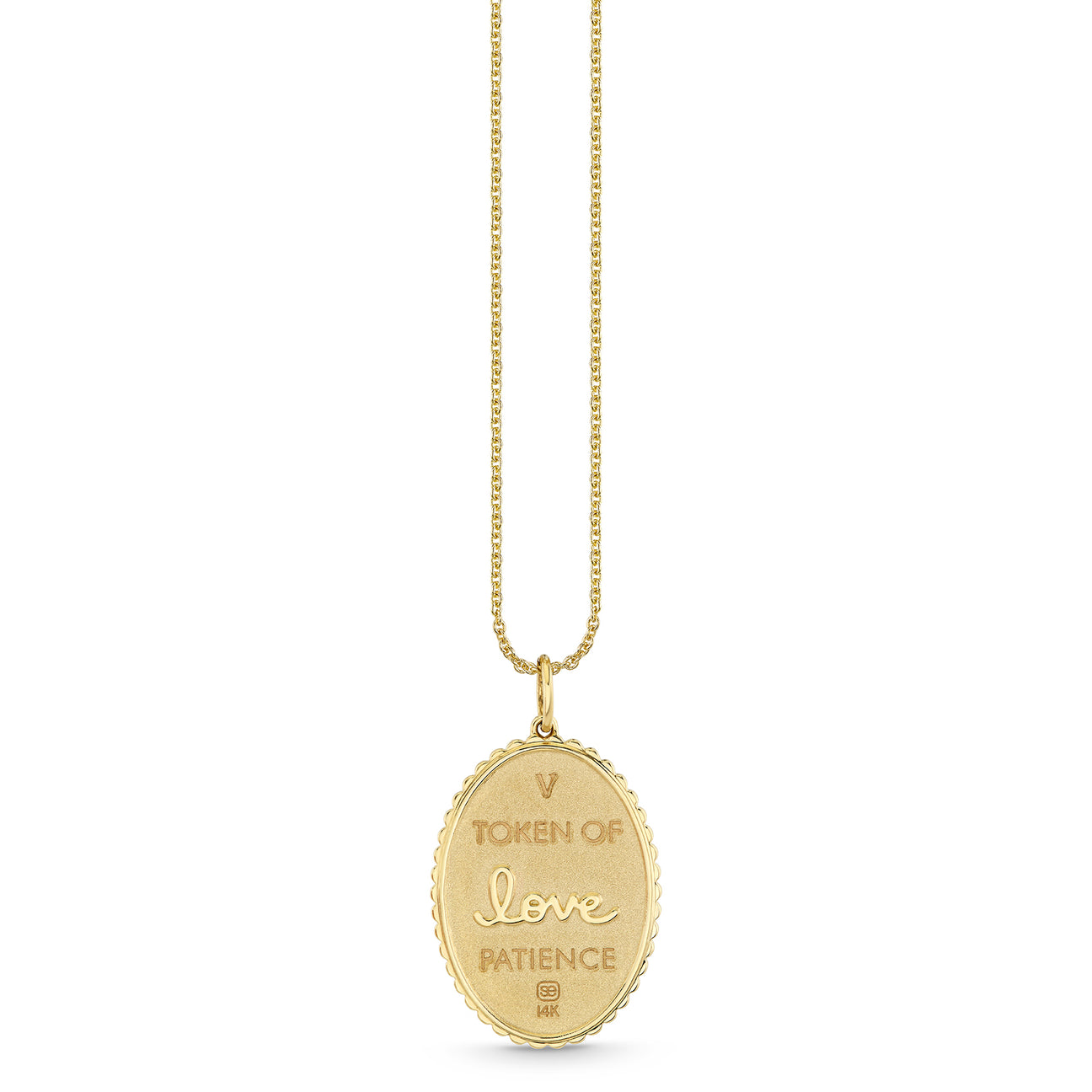 The charm is available for purchase on its own or paired with a fine 14k gold cable chain. The chain is 16 inches long, with an additional extender bringing it to 18 inches, ensuring a perfect fit for any neckline.