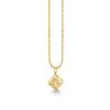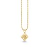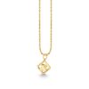 The charm is available for purchase on its own or paired with a fine 14k gold cable chain. The chain is 16 inches long, with an additional extender bringing it to 18 inches, ensuring a perfect fit for any neckline.