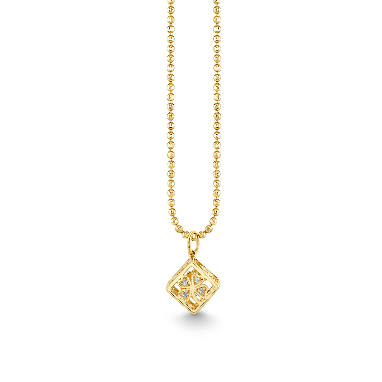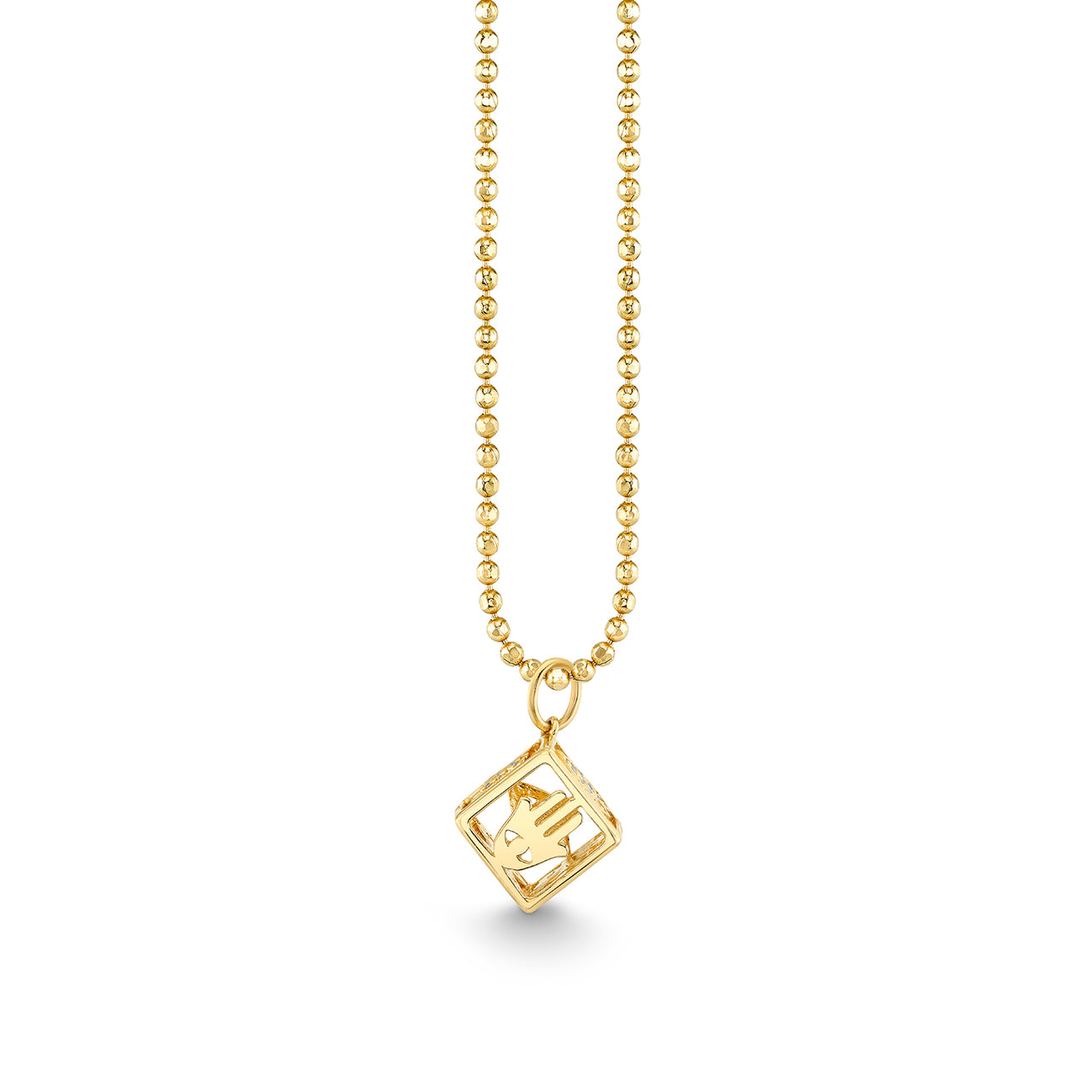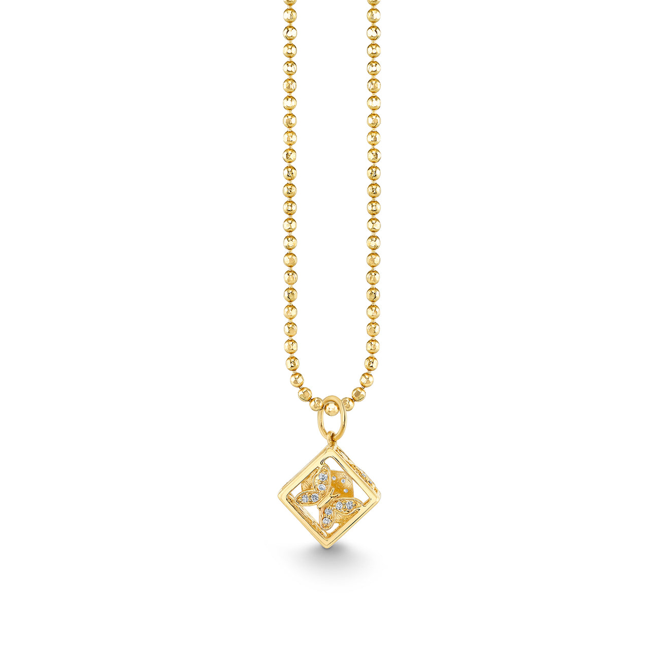 Crafted from 14k gold and diamonds, the Open Icon Box Charm features Sydney Evan’s signature icons on each side, creating a playful, multifaceted design with endless meaning.