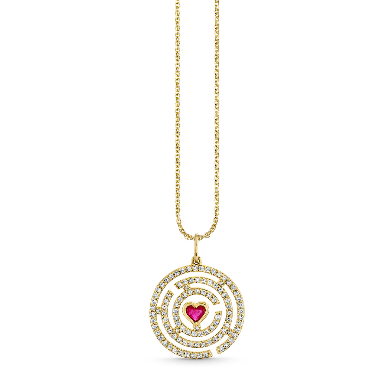 Sydney Evan Women’s Necklaces Gold, Diamond & Ruby Love Labyrinth Charm