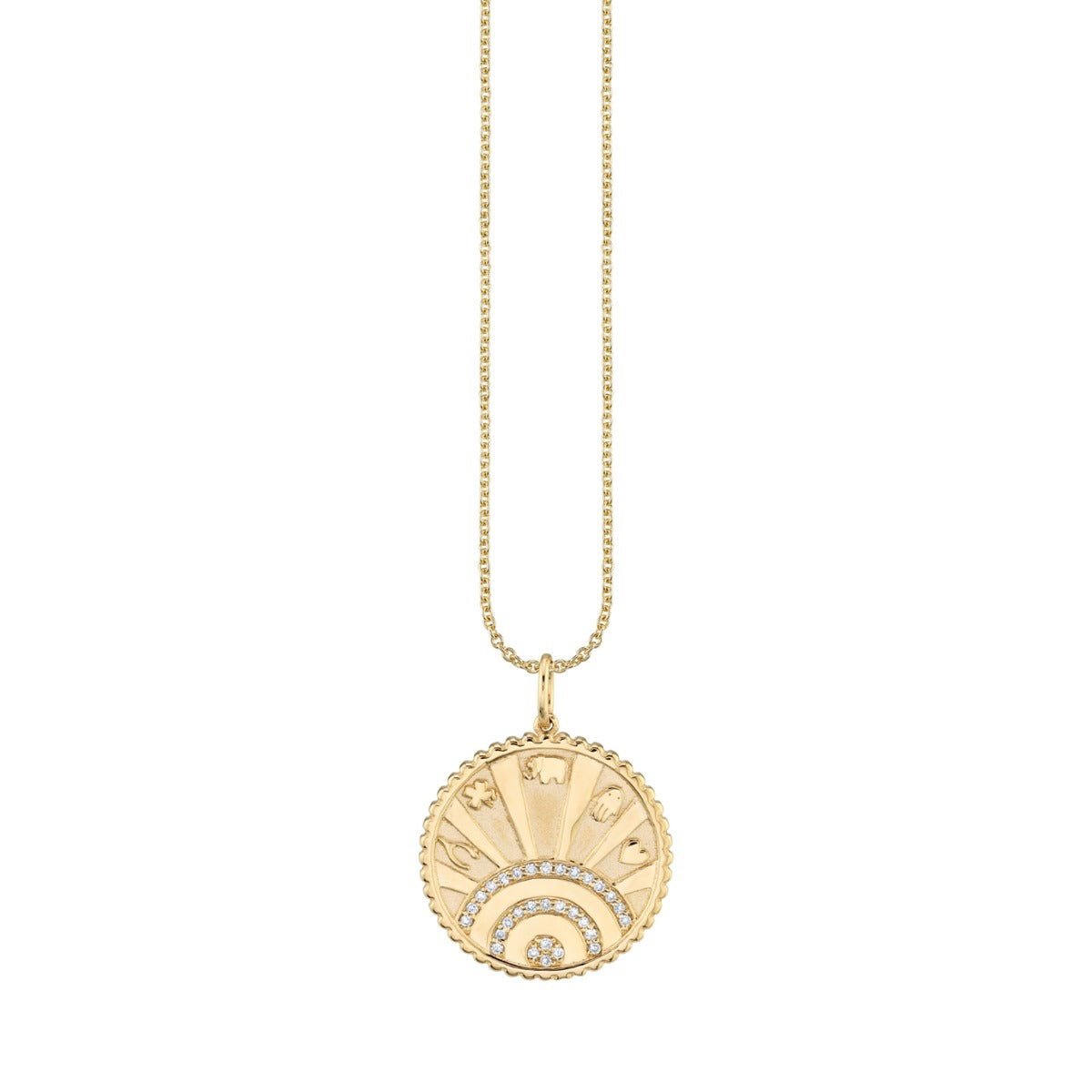 Sydney Evan Women’s Necklaces Gold & Diamond Small Luck Coin With Rays Charm