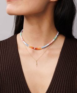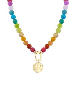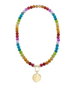 Sydney Evan Women’s Pure Gold Large Happy Face Rainbow Jade Necklace