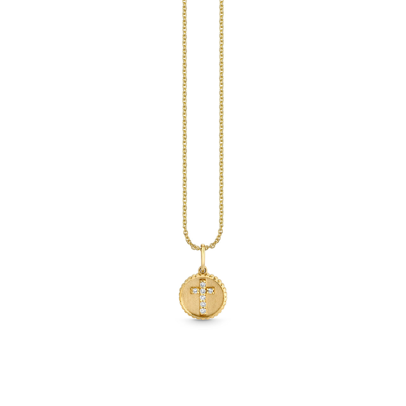 Sydney Evan Women’s Necklaces Gold & Diamond Tiny Cross Coin Charm