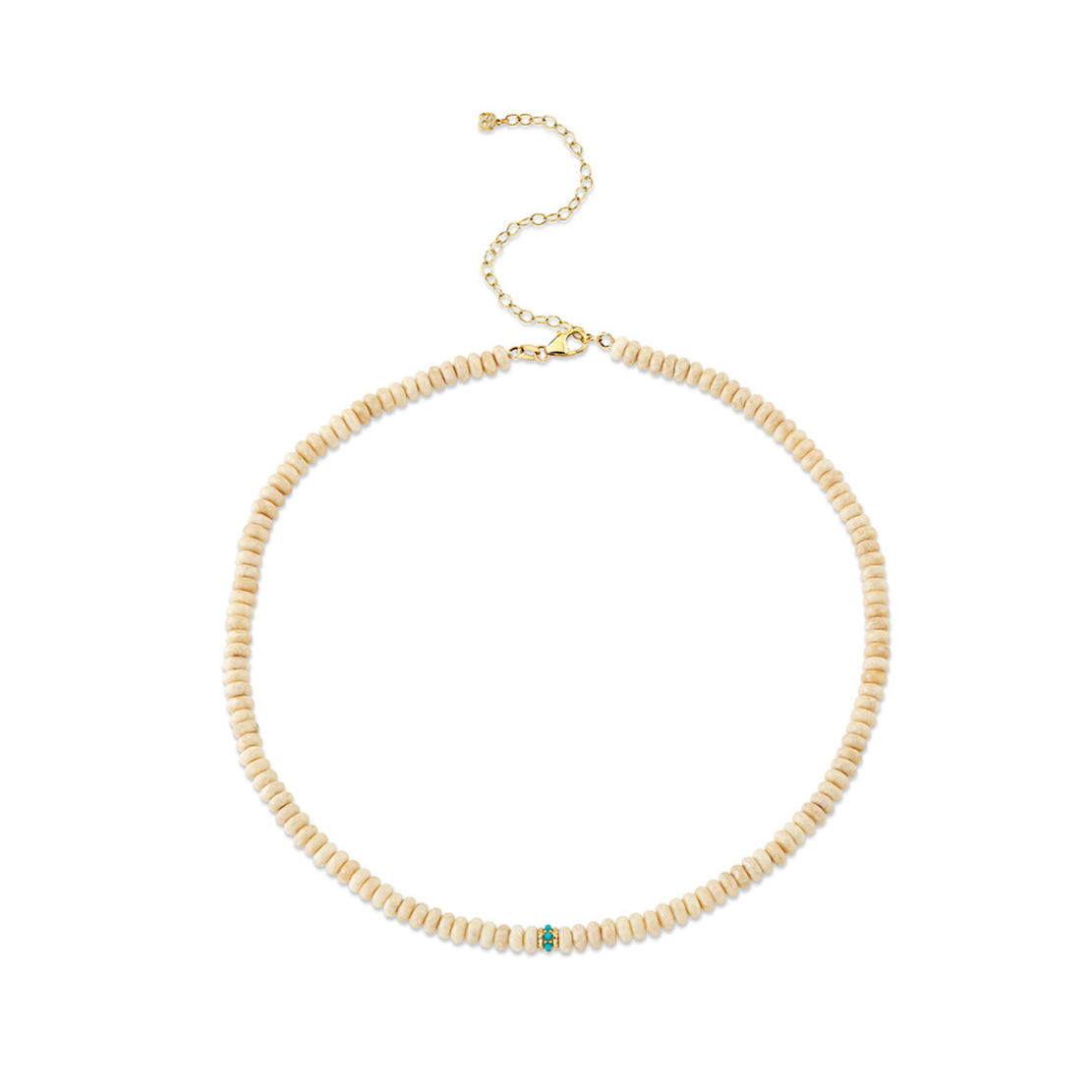 Sydney Evan Women’s Necklaces Gold, Diamond & Turquoise Pave Rondelle Cream Jasper Choker