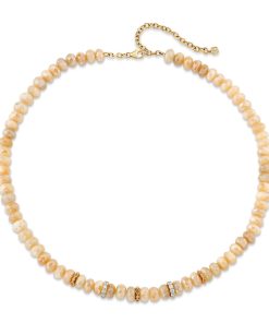Sydney Evan Women’s Necklaces Gold, Diamond & Turquoise Pave Rondelle Cream Jasper Choker