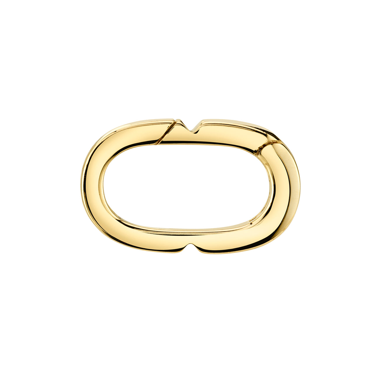 This sleek oval link clip is crafted in 14k yellow gold, measuring approximately 3/4″ x 1/2″ x 1/8″. Its refined design adds a touch of elegance and versatility, perfect for securing charms or enhancing your favorite accessories.