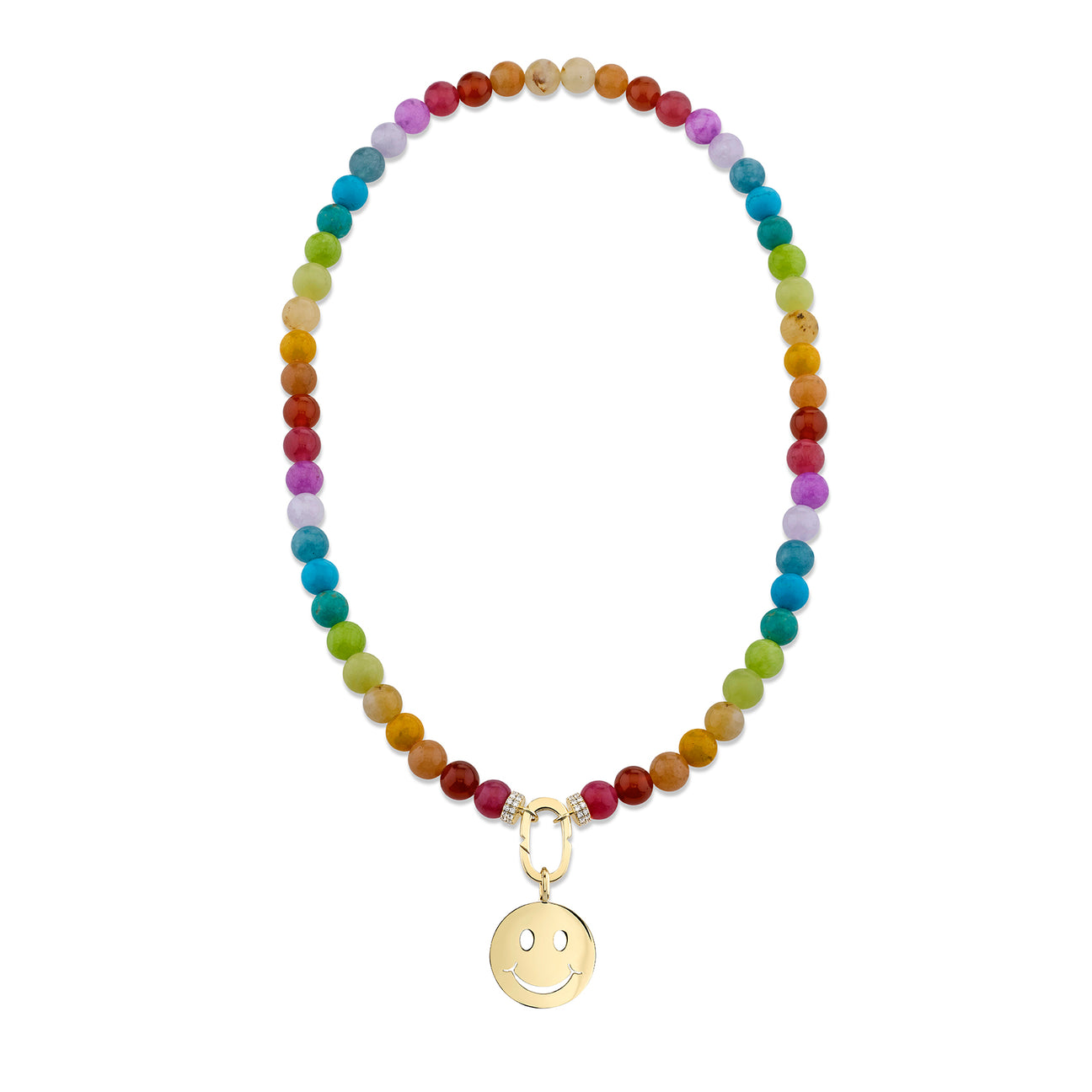 Sydney Evan Women’s Pure Gold Large Happy Face Rainbow Jade Necklace