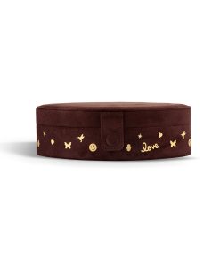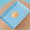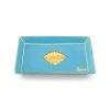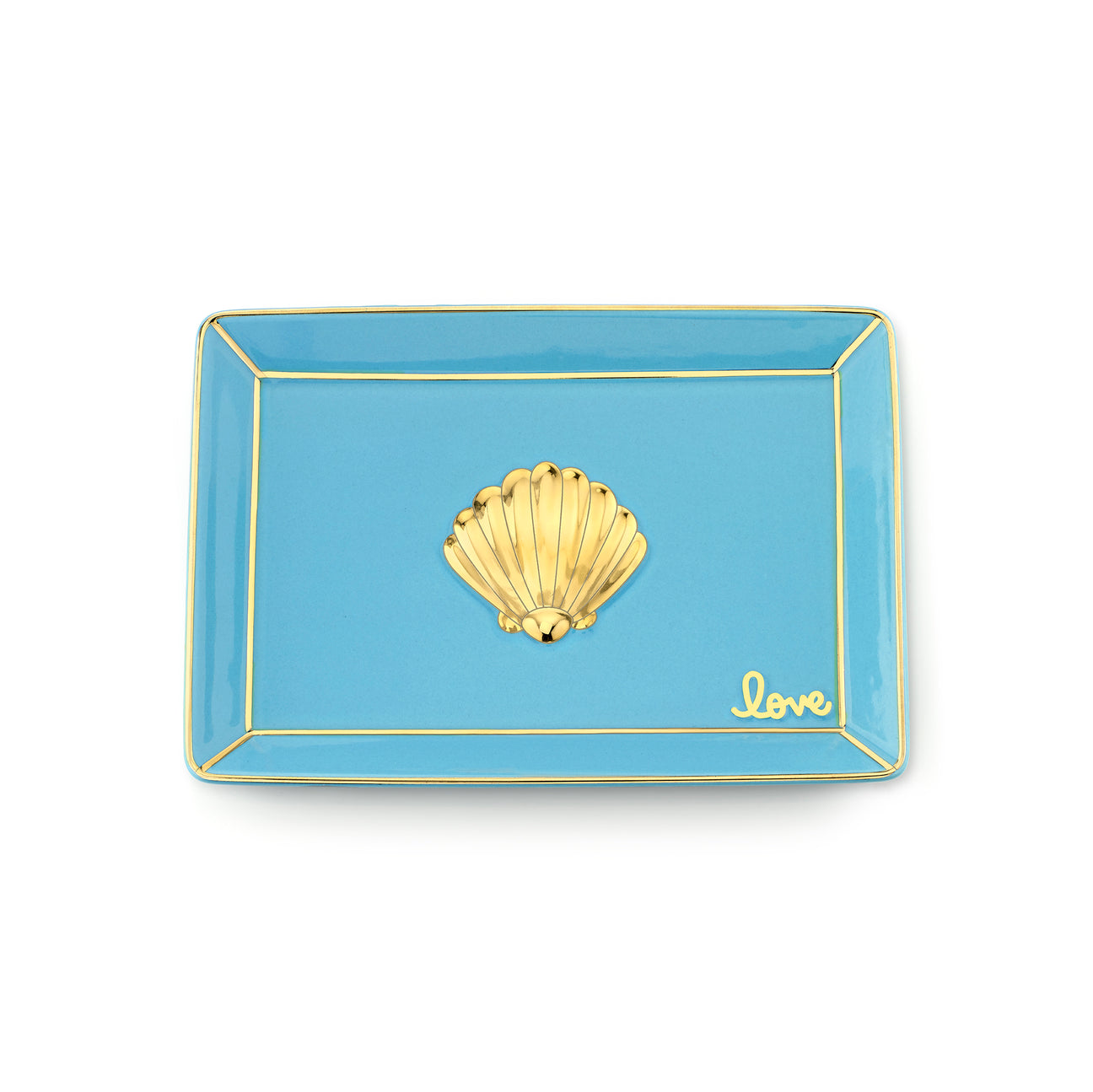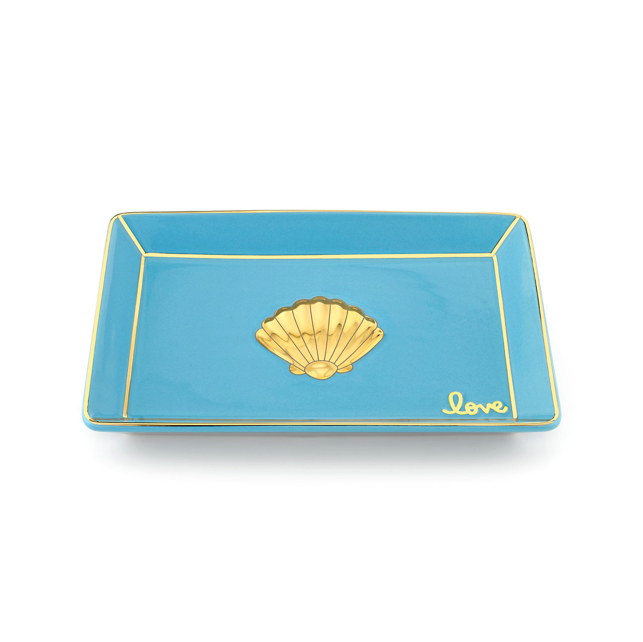 Transform your space with our exquisite jewelry tray, meticulously crafted from high-fired porcelain and adorned with elegant solid gold accents. Each tray showcases our signature shell motif and iconic love script, embodying timeless charm and sophistication. Measuring approximately 7′ x 4.75′, it’s a perfect blend of beauty and functionality, ideal for adding a touch of luxury to any setting.