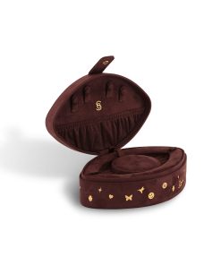 Transform your space with our exquisite jewelry tray, meticulously crafted from high-fired porcelain and adorned with elegant solid gold accents. Each tray showcases our signature shell motif and iconic love script, embodying timeless charm and sophistication. Measuring approximately 7′ x 4.75′, it’s a perfect blend of beauty and functionality, ideal for adding a touch of luxury to any setting.